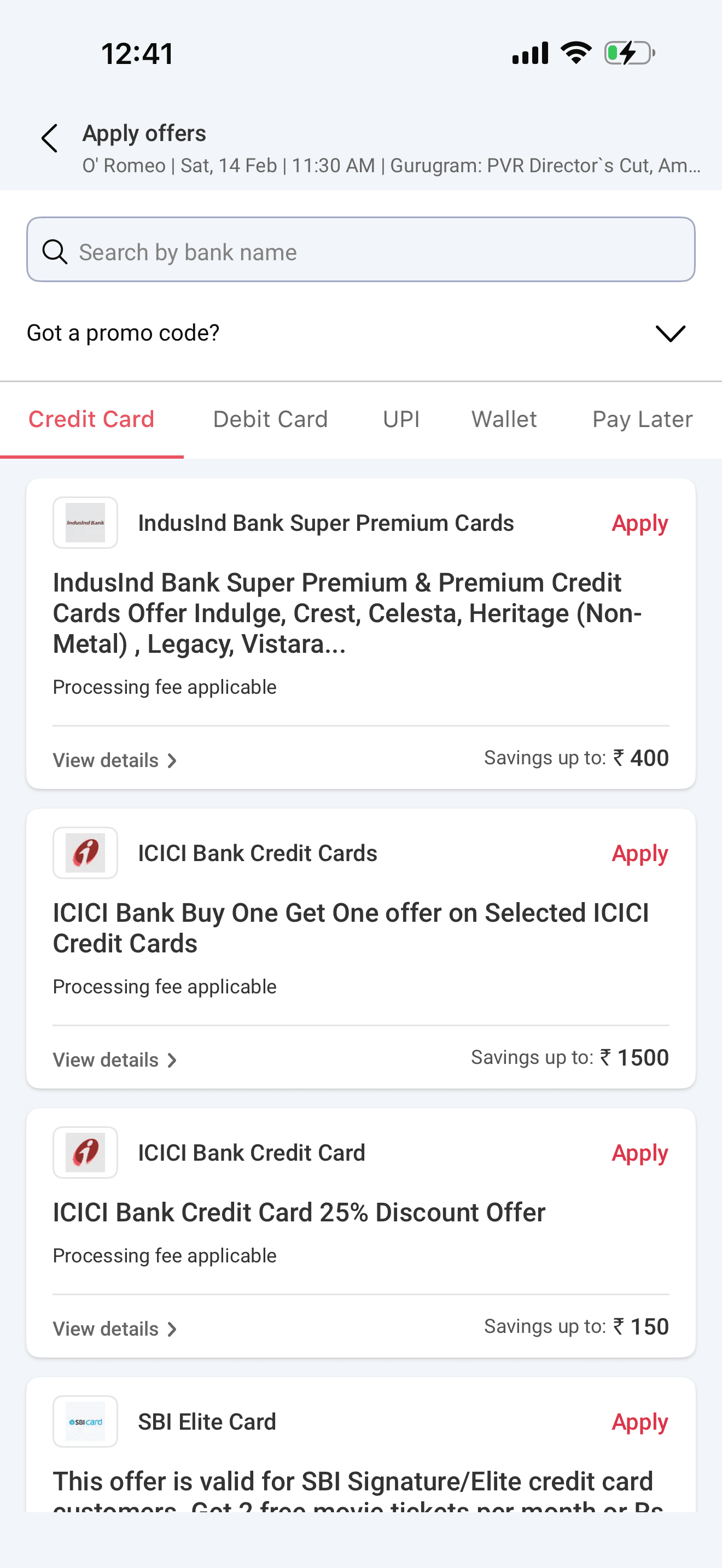 Enhanced visual hierarchy to clearly show bank names, discounts, and eligibility.