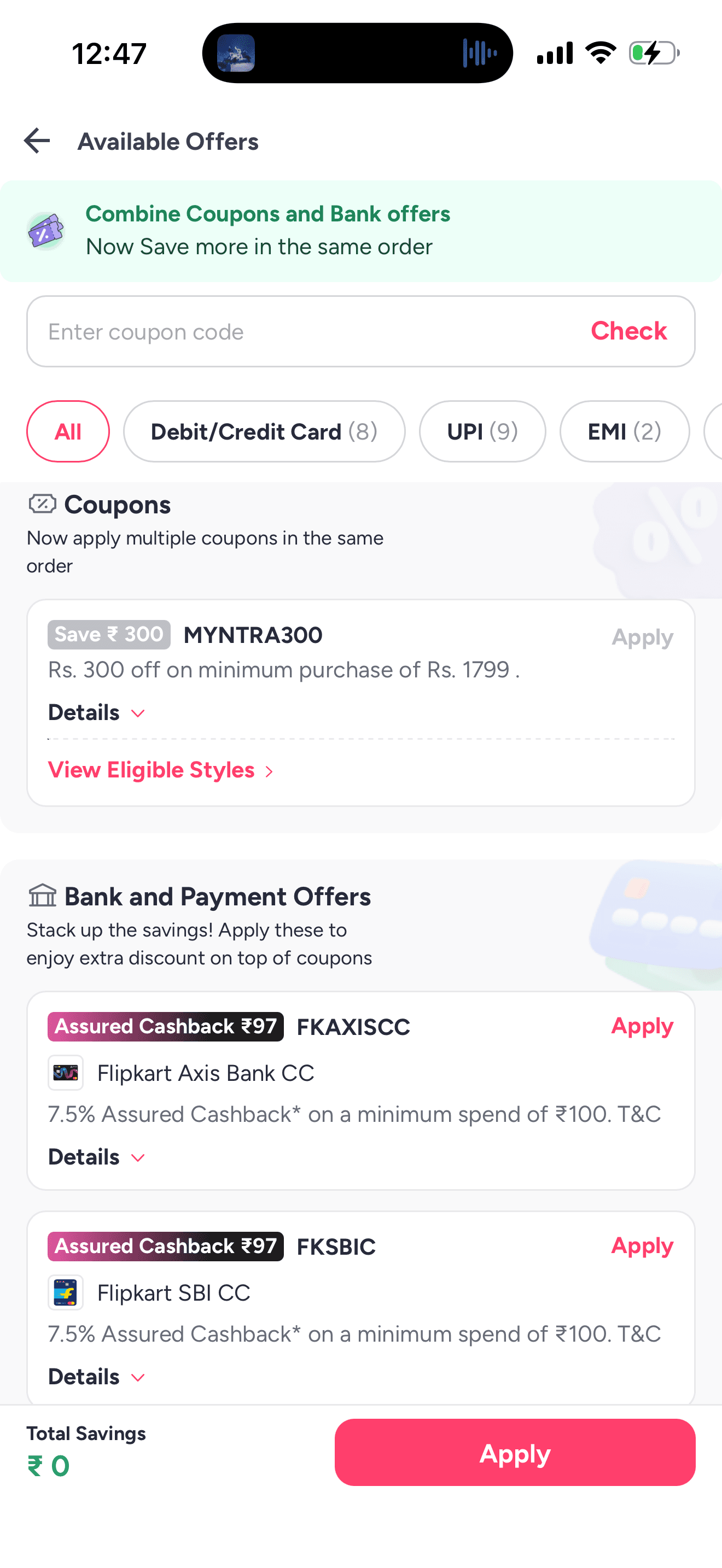 Added smart recommendations, where the system highlights the best savings based on the user’s selected payment method.