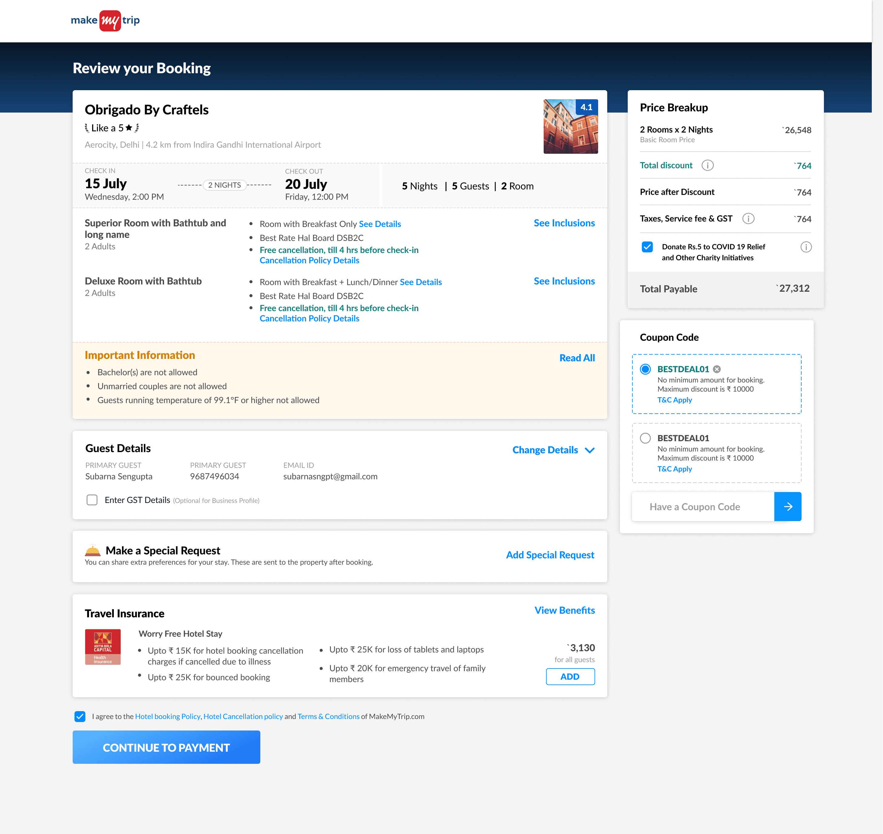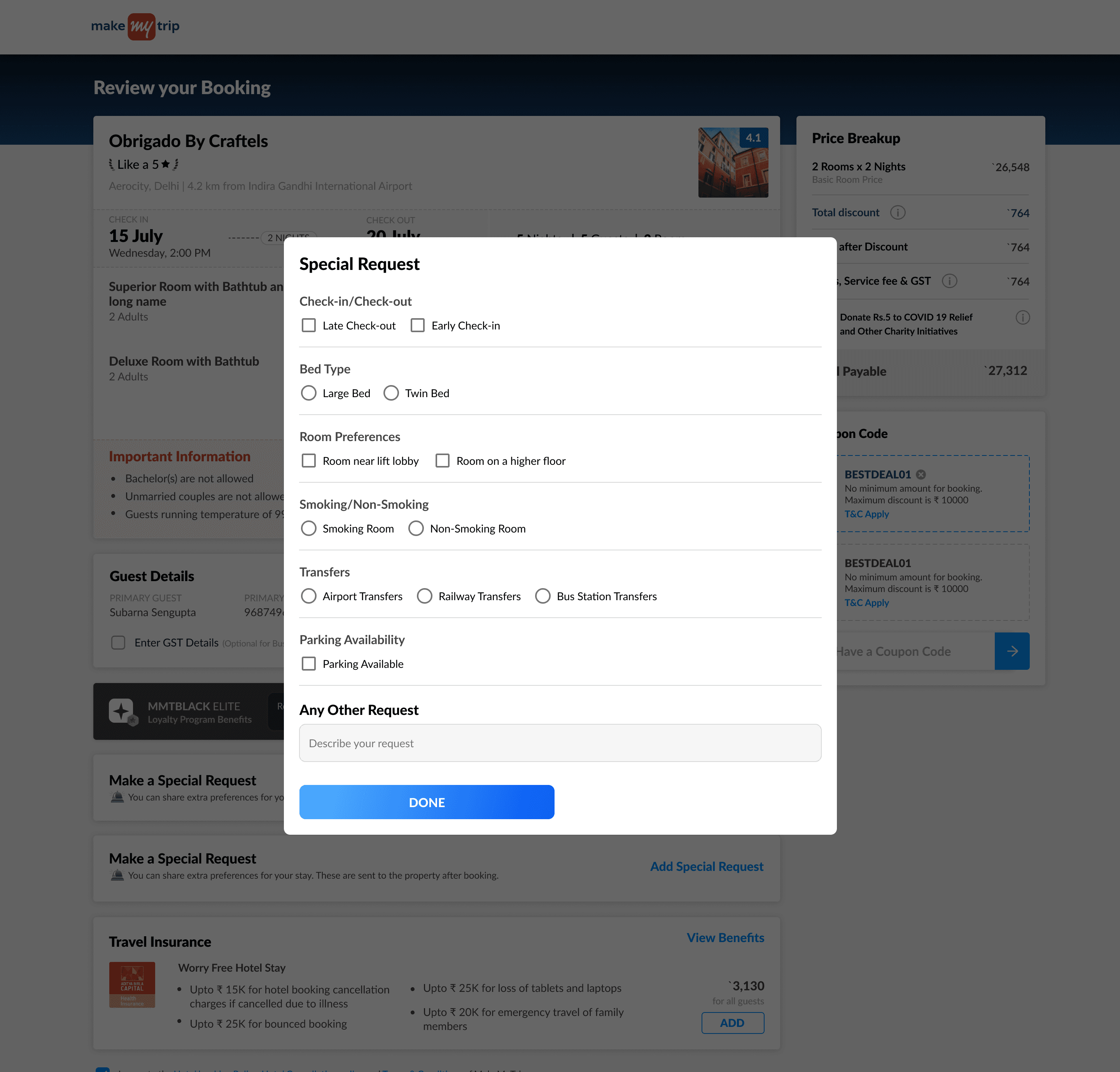 The option to add special requests was buried deep in the booking journey, so very few people even discovered it.