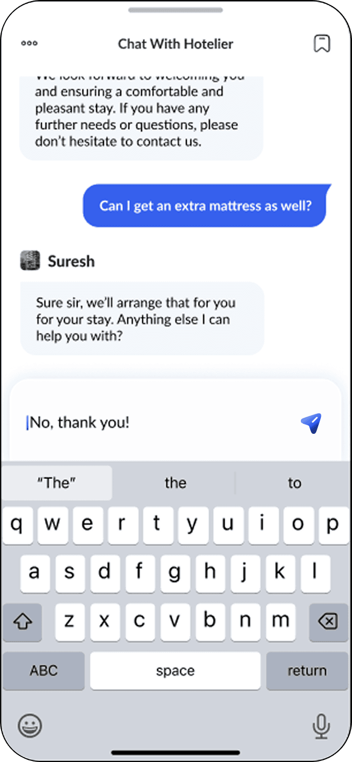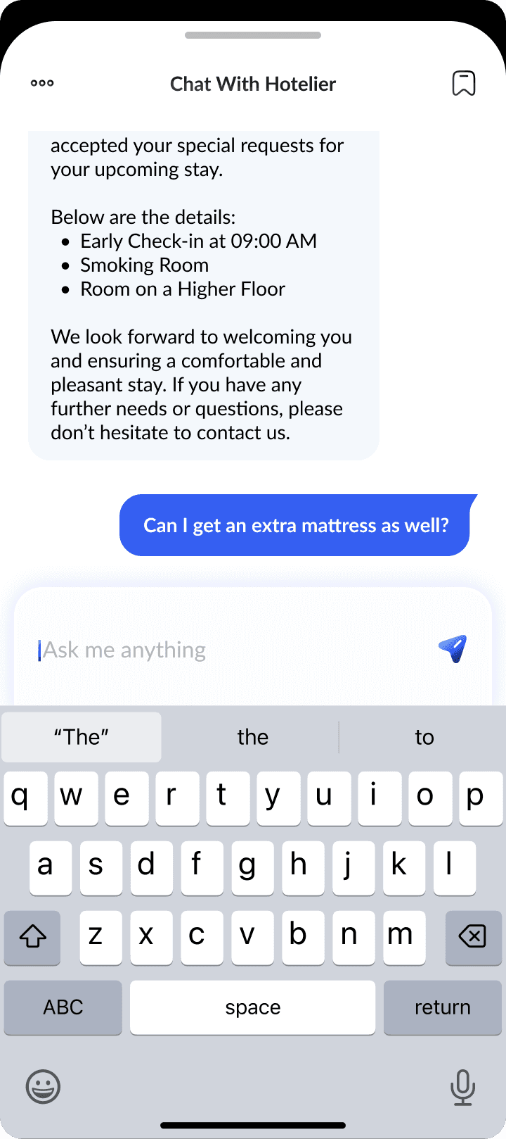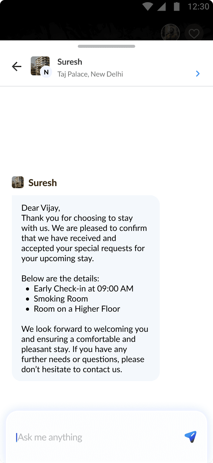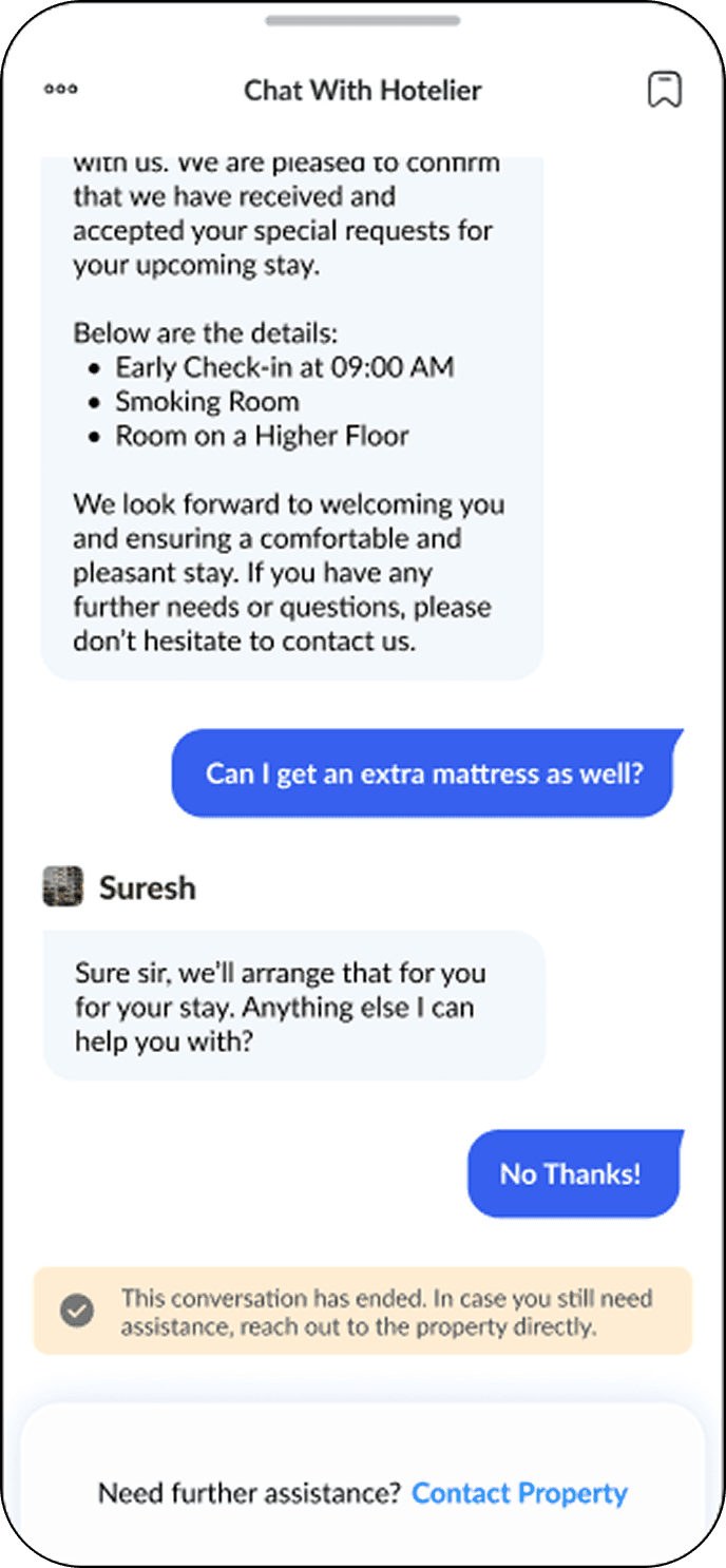 Introduced a chat interface to resolve requests and queries instantly with the hotel team.