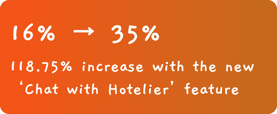 Hotel response rate increased from 16% to 35% — a 120% improvement — as the new Chat with Hotelier feature enabled faster, direct communication and easier request management for hotel staff.