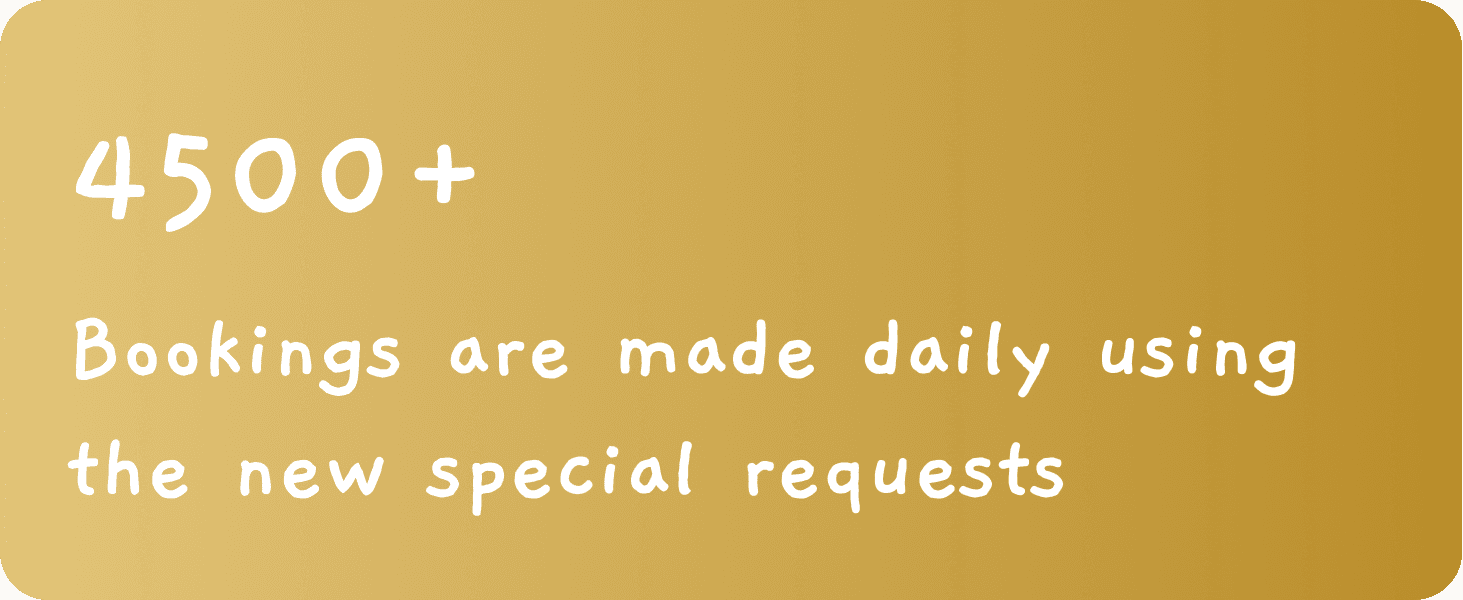 Over 4,500 bookings are now made daily using Special Requests, showcasing its integration into users’regular booking behavior and strong feature adoption.