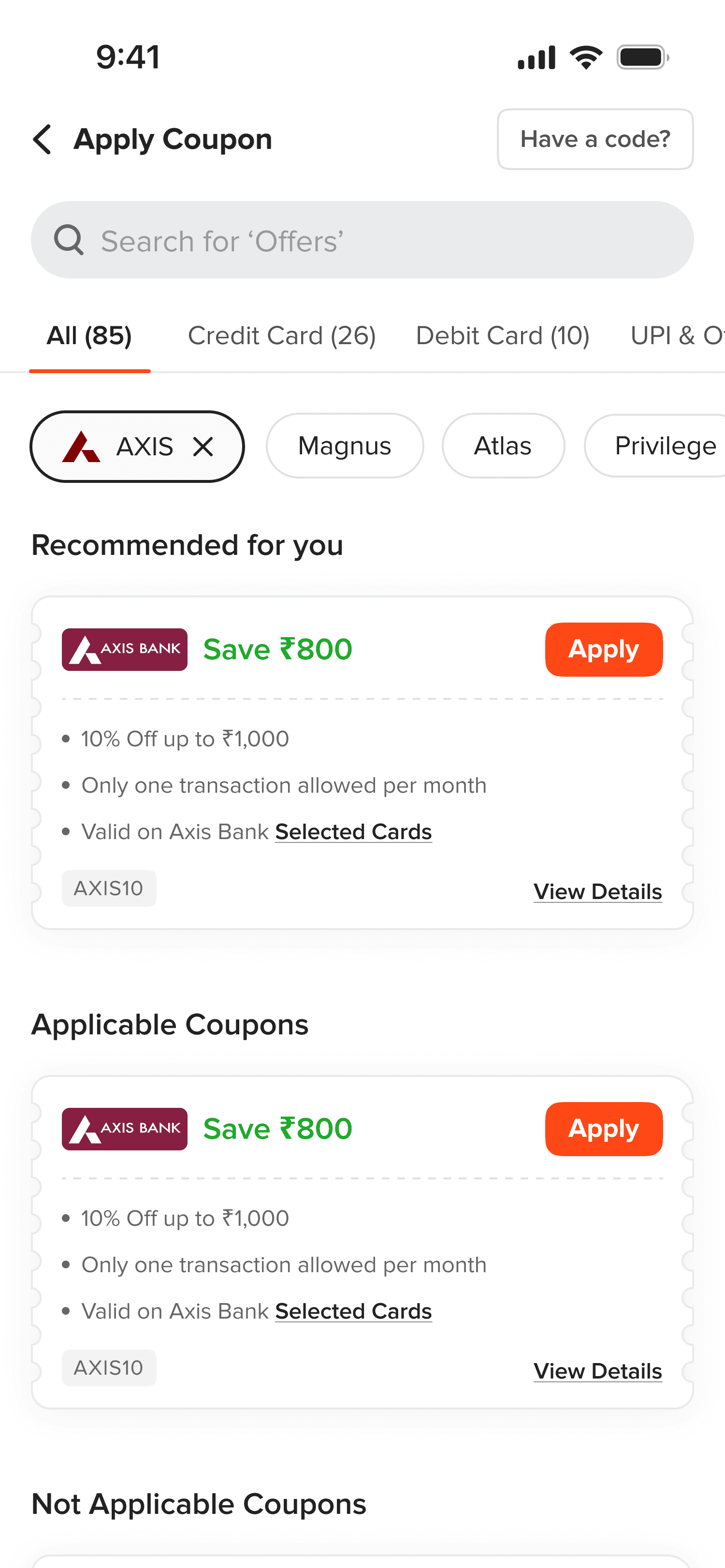 Introduced tabs for “All Offers,” “Credit Cards,” “Debit Cards,” and “Other Offers,” making navigation intuitive.