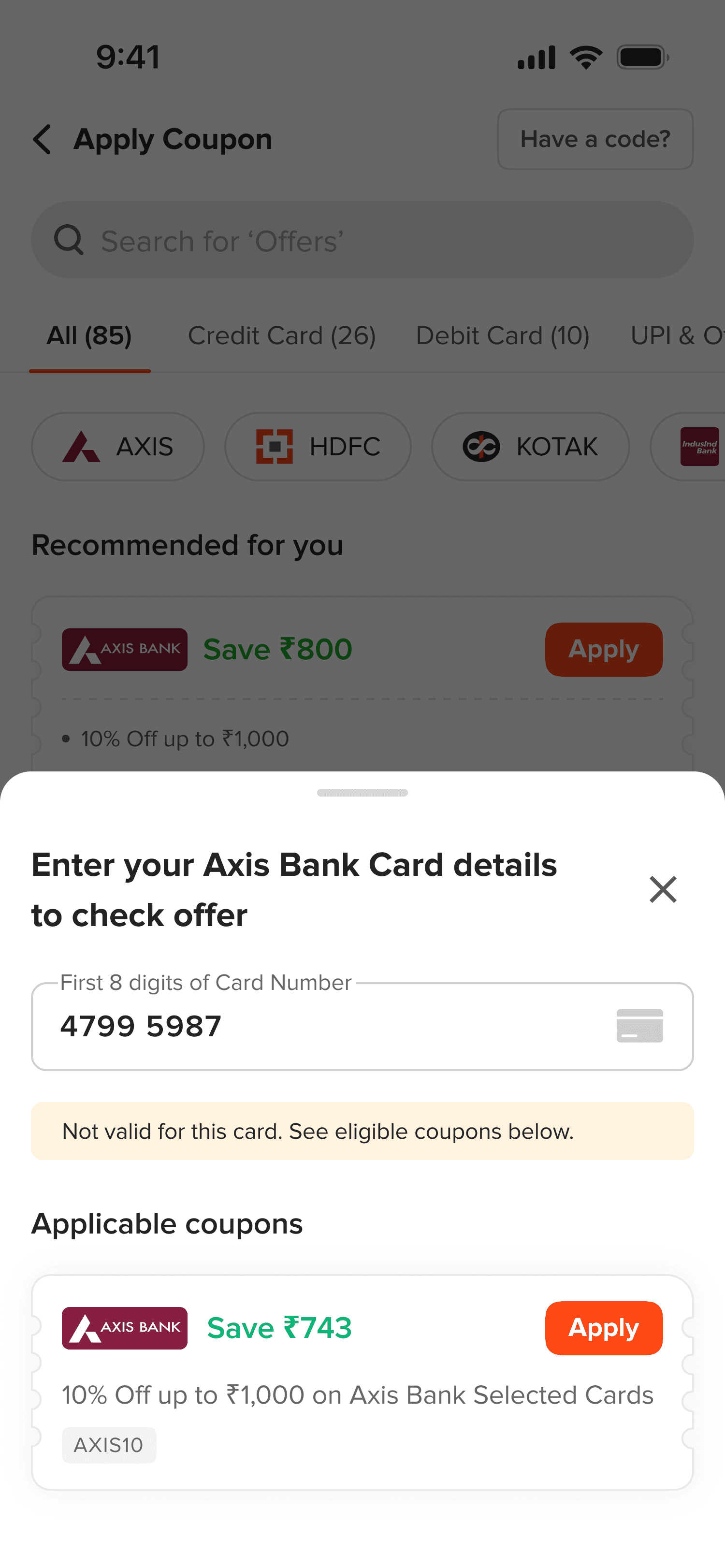 Solved the Axis Bank problem—80+ card types with varying offers. I introduced a system where users entered the first 8 digits of their card to see applicable deals.