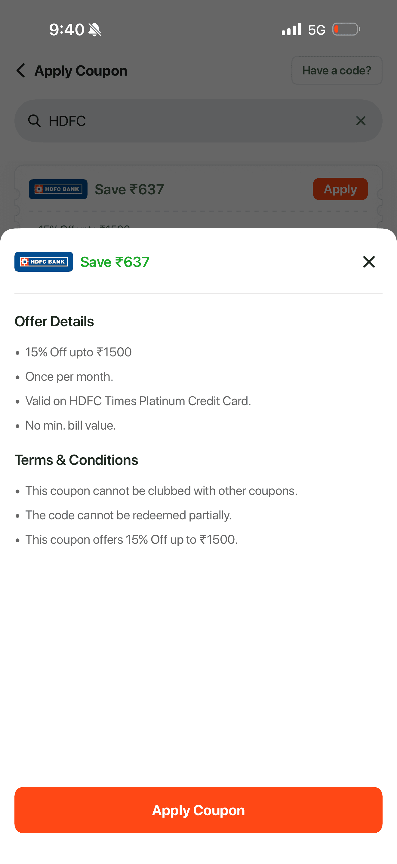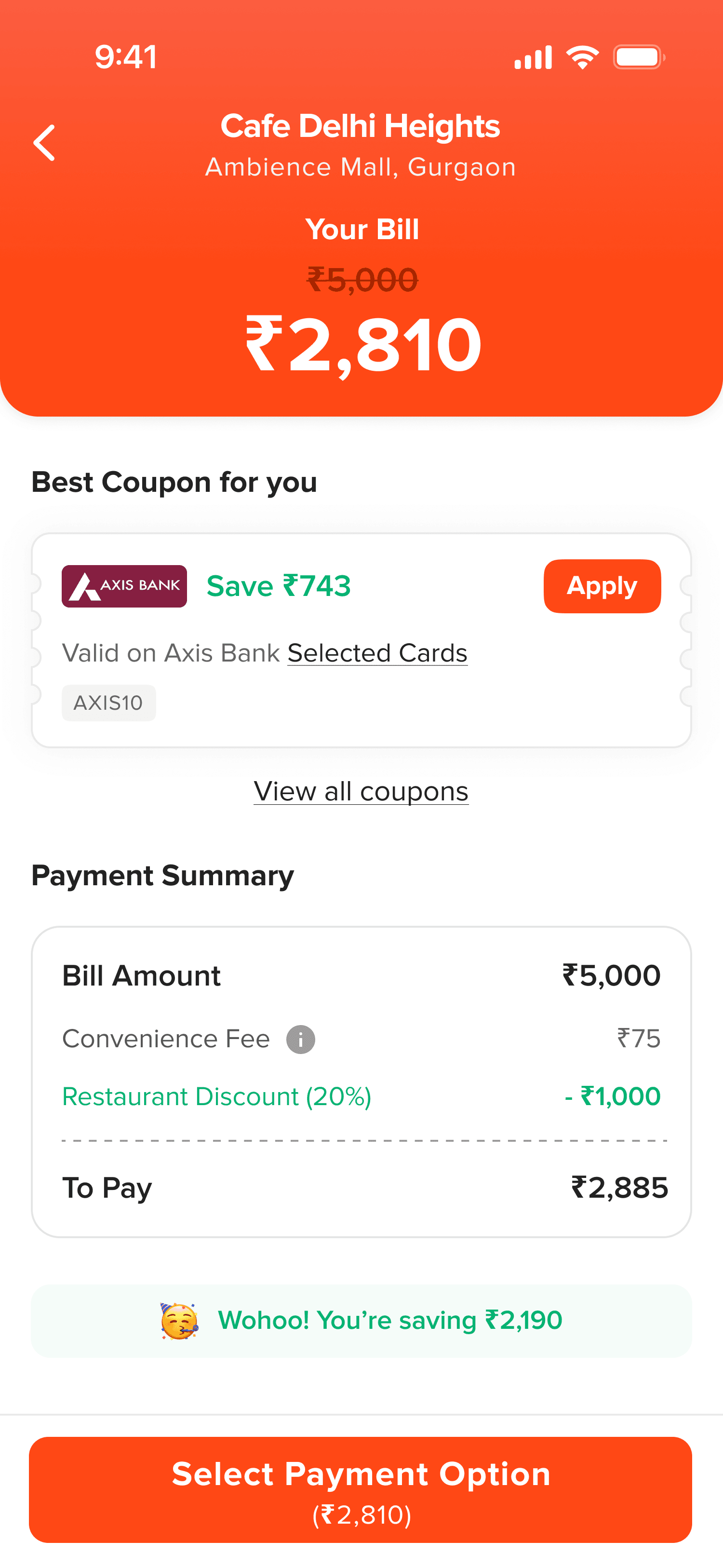 I introduced an upfront coupon section that automatically surfaced the most relevant and highest saving coupon based on the user’s selected payment method.